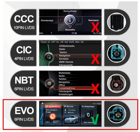 • BMW X1, 2015+ with EVO systeem.